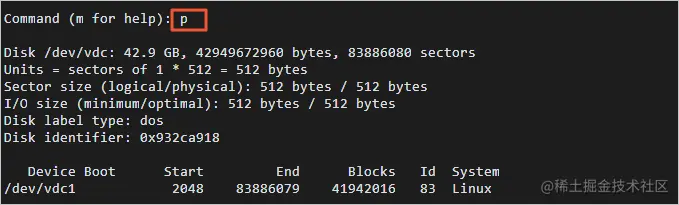 1)执行如下命令,对/dev/vdb数据盘进行分区。