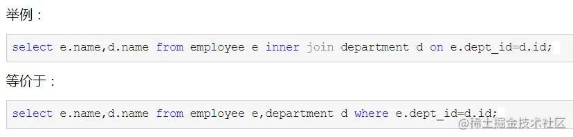 解释:只列出这些连接表中与连接条件相匹配的数据行。