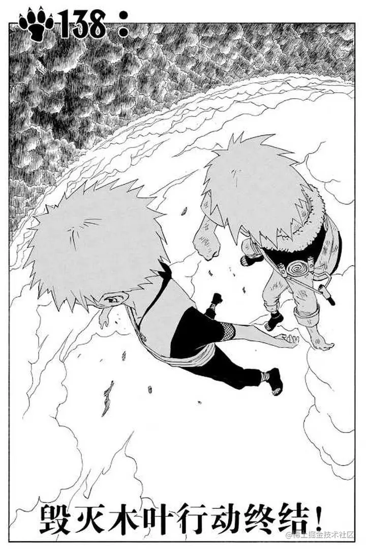 岸本齐史,《火影忍者》。作为广角镜头的应用,这张扉页构图水平堪比专业插画