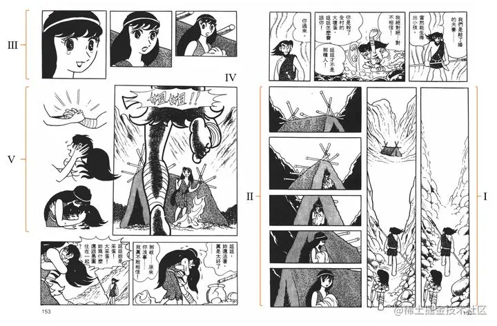 这两页描绘了姐弟相见的过程,所用技法的丰富堪称教科书级别。从Ⅰ到Ⅴ: