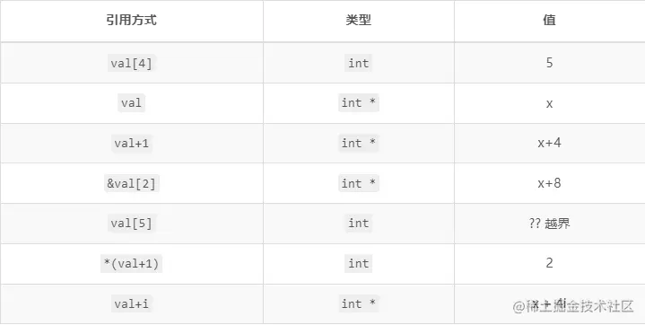 既然是连续的地址空间,就有很多不同的访问方式,比方对于 int val[5] 来说