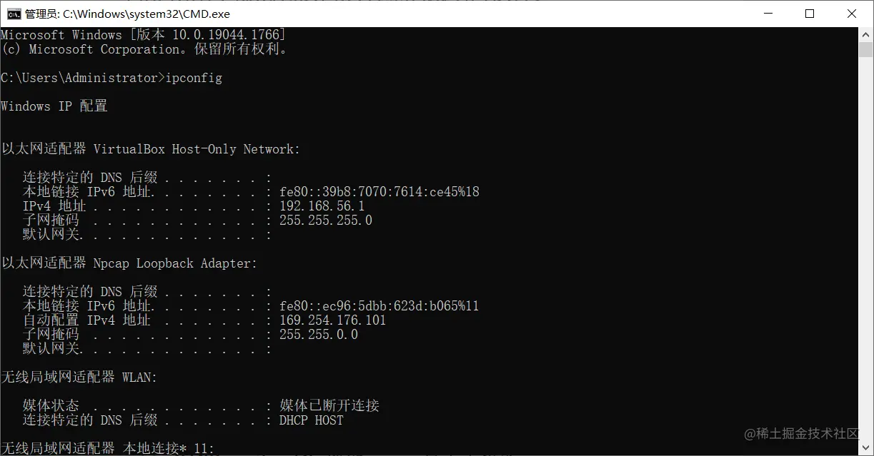 显示自己 IP地址 ipconfig