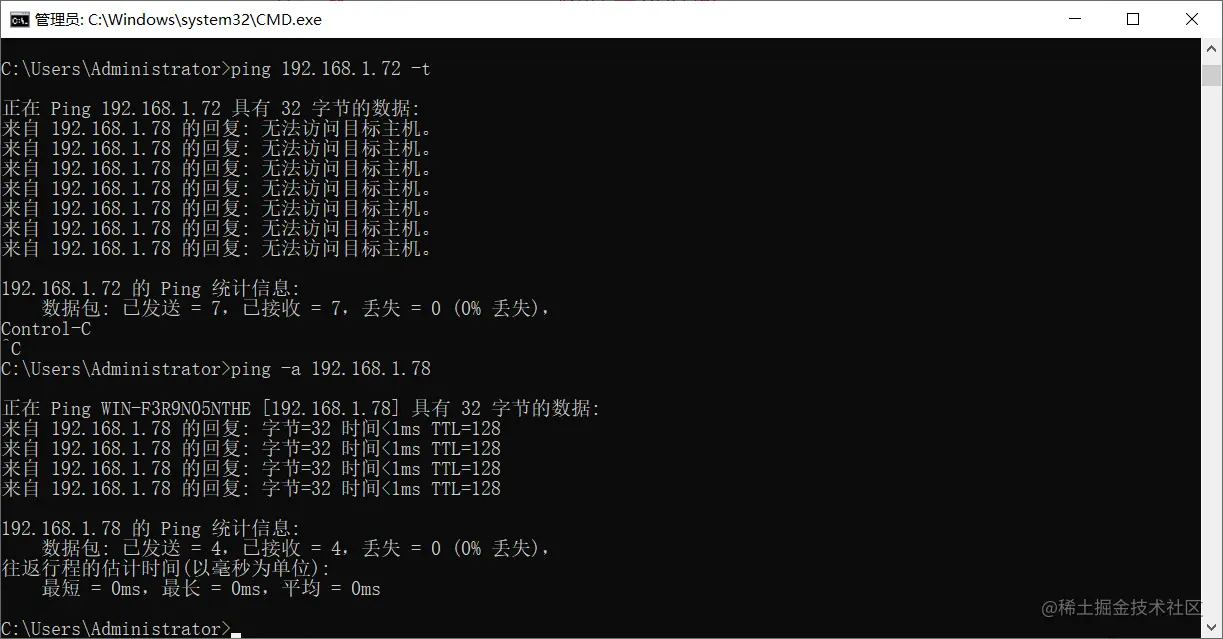 ping -a ip 地址 显示主机名