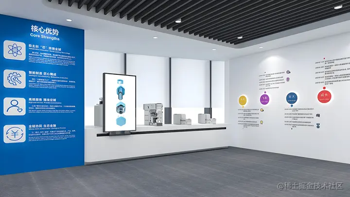 1、基础墙面设计:在安装屏幕及轨道前,我们首先需要确保滑轨屏背景风格与展厅整体风格的适配度。
