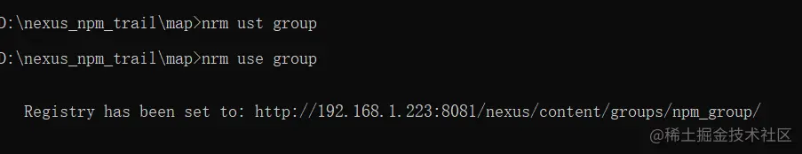 npm install -g nrmnrm add host http://YOURADDRESS/nexus/content/repositories/webHost/nrm add group http://YOURADDRESS/nexus/content/groups/web-group/