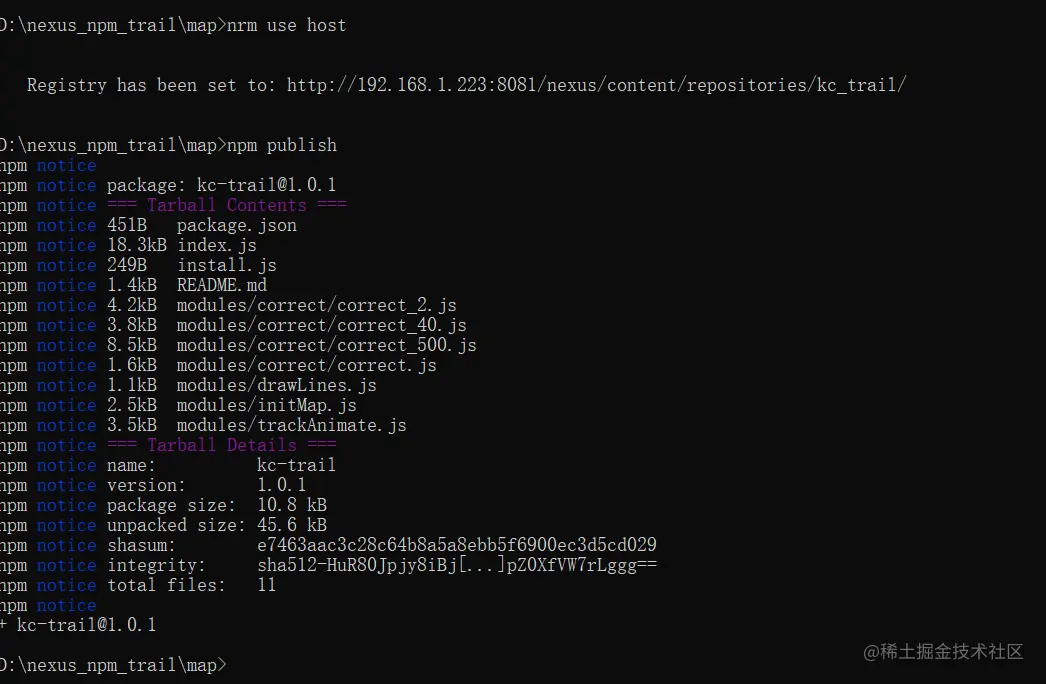 设置源为host,然后直接执行npm publish,将轨迹插件发布到私服上