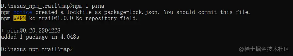 **1.**进入到轨迹插件文件夹下,然后进入终端执行npm init生成package.json文件用于记录当前插件的信息,如下所示: