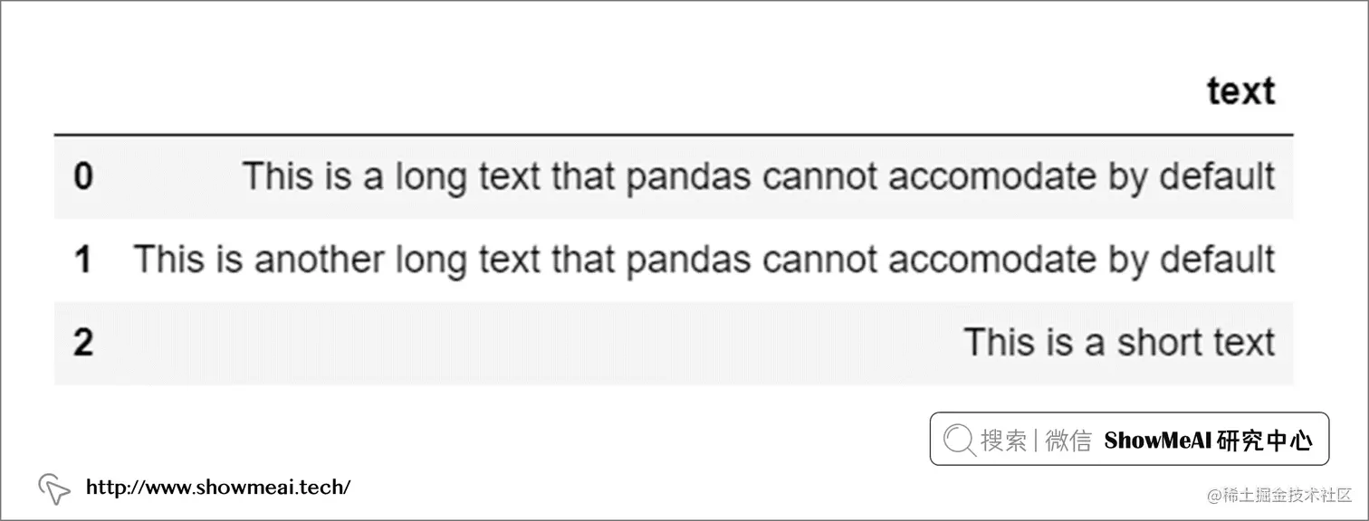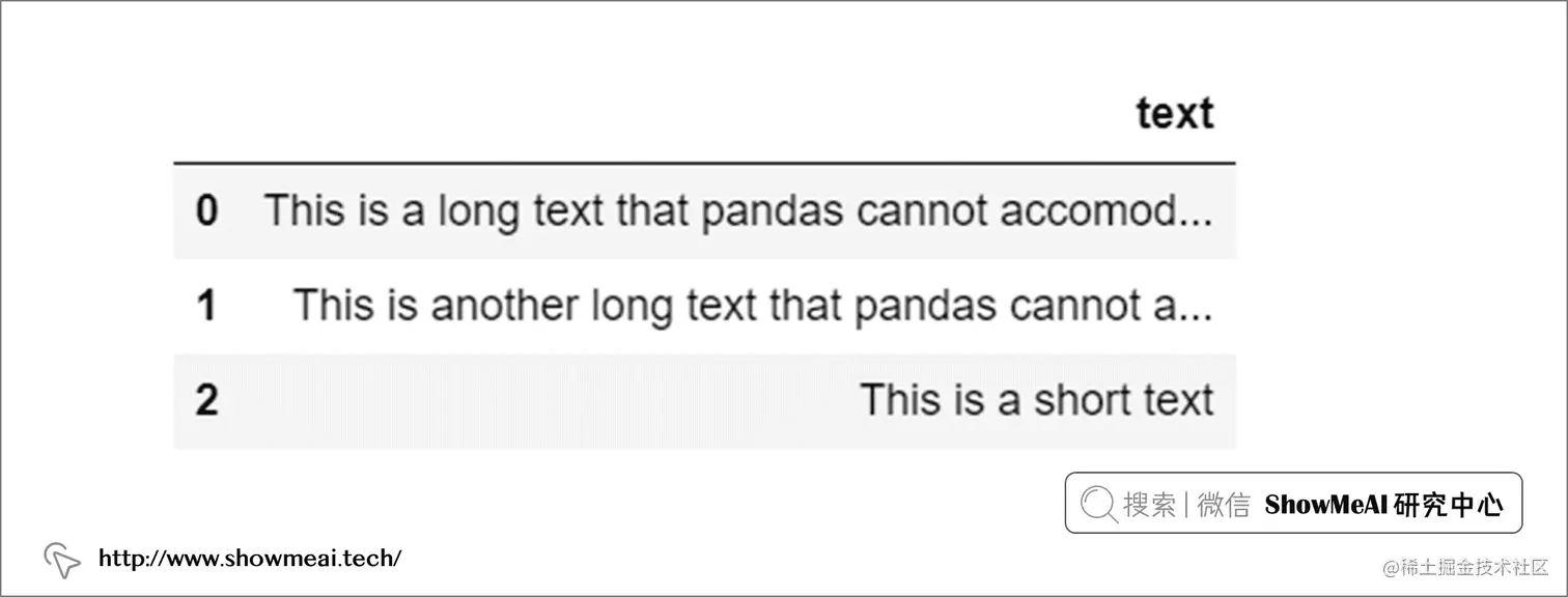 在下图中,我们看不到前两行的全文,因为它们的字符太长(长度超过了 50)。