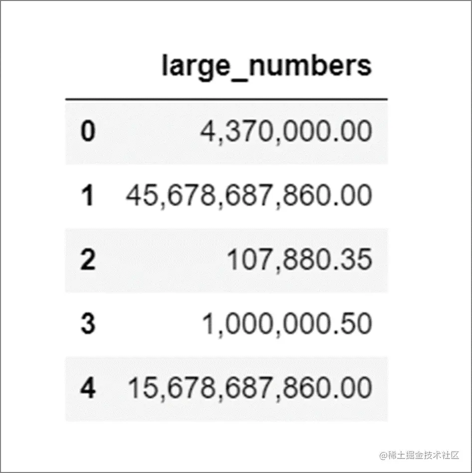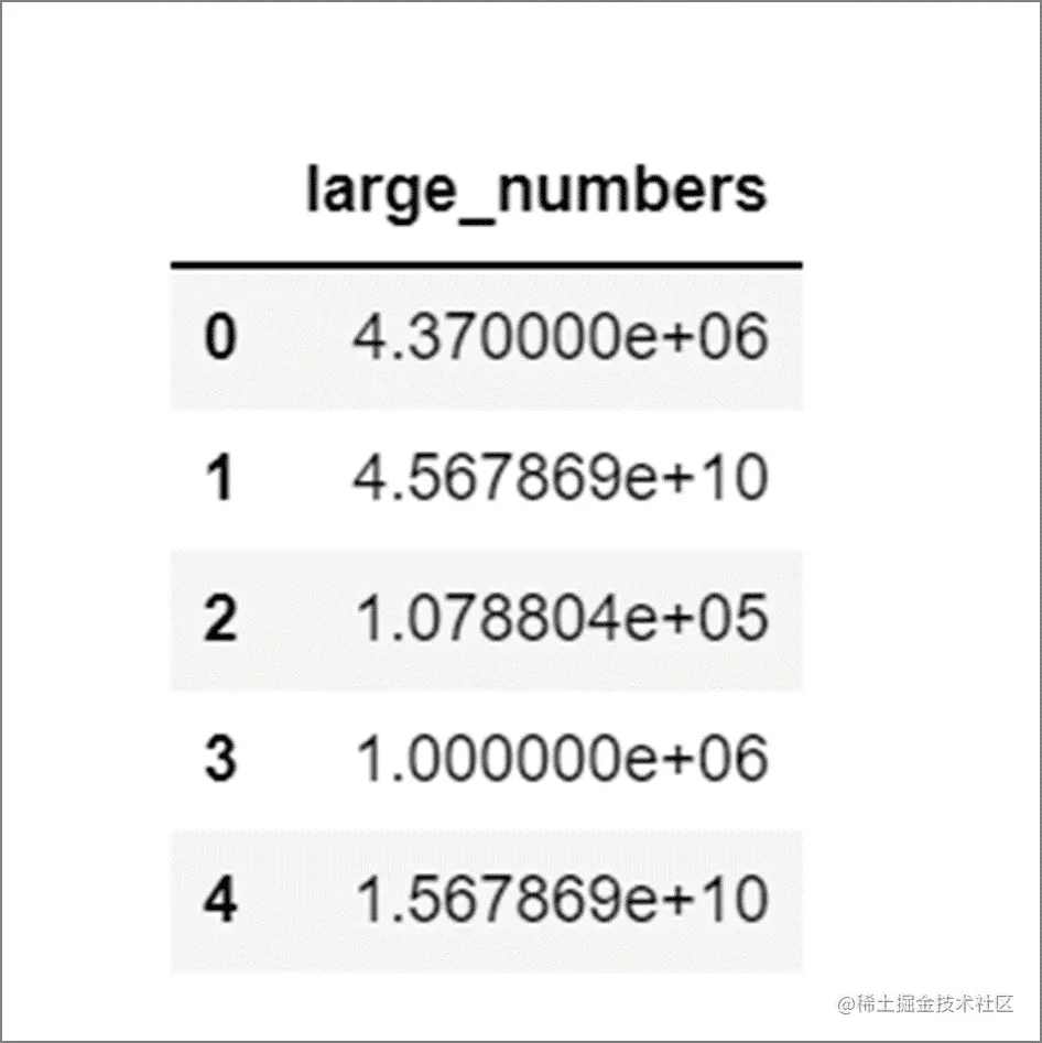 Pandas 默认使用『科学计数法』显示大浮点数,例如 1000000.5 显示为 1.000e+06 。对于数值较大的数字,就可能有如下的显示,这导致我们看不到具体数值。