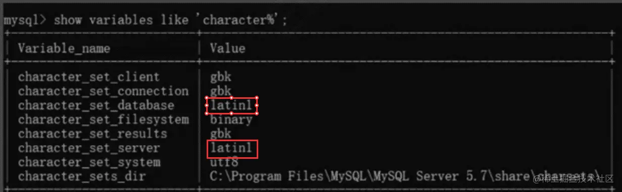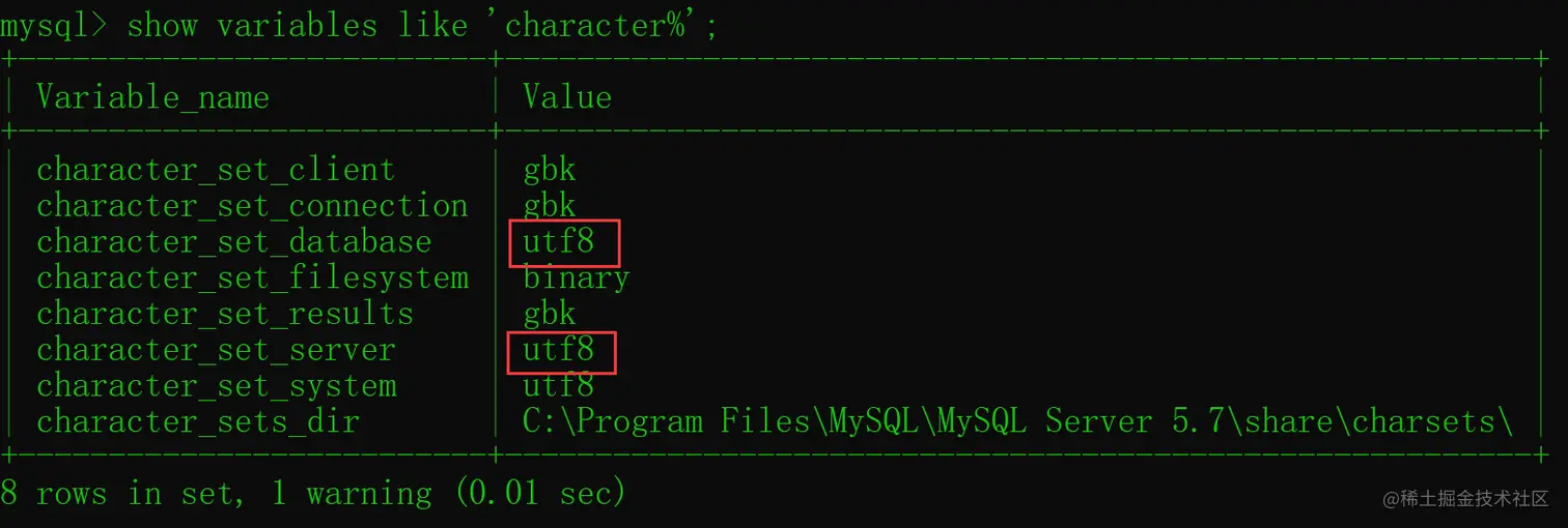 show variables like 'character%';来查询当前数据库的编码方式是哪一种~
