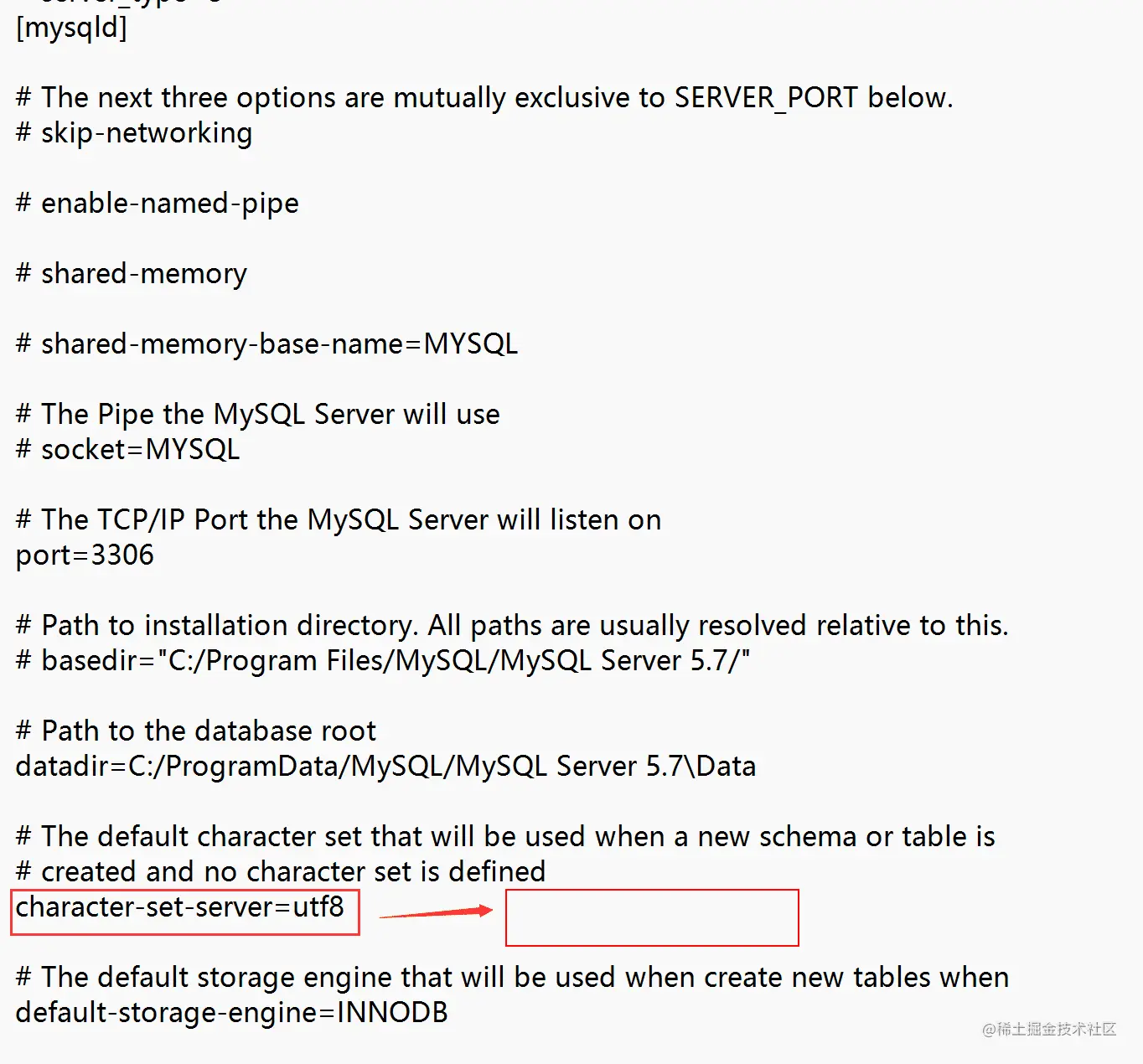 MySQL 默认的字符集叫做拉丁文, 是不支持中文的. 为了能够存储中文, 就需要把字符集 改成 UTF-8 修改 MySQL 字符集的办法有很多种, 而修改 MySQL 的配置文件则是一个 一劳永逸 的办法~