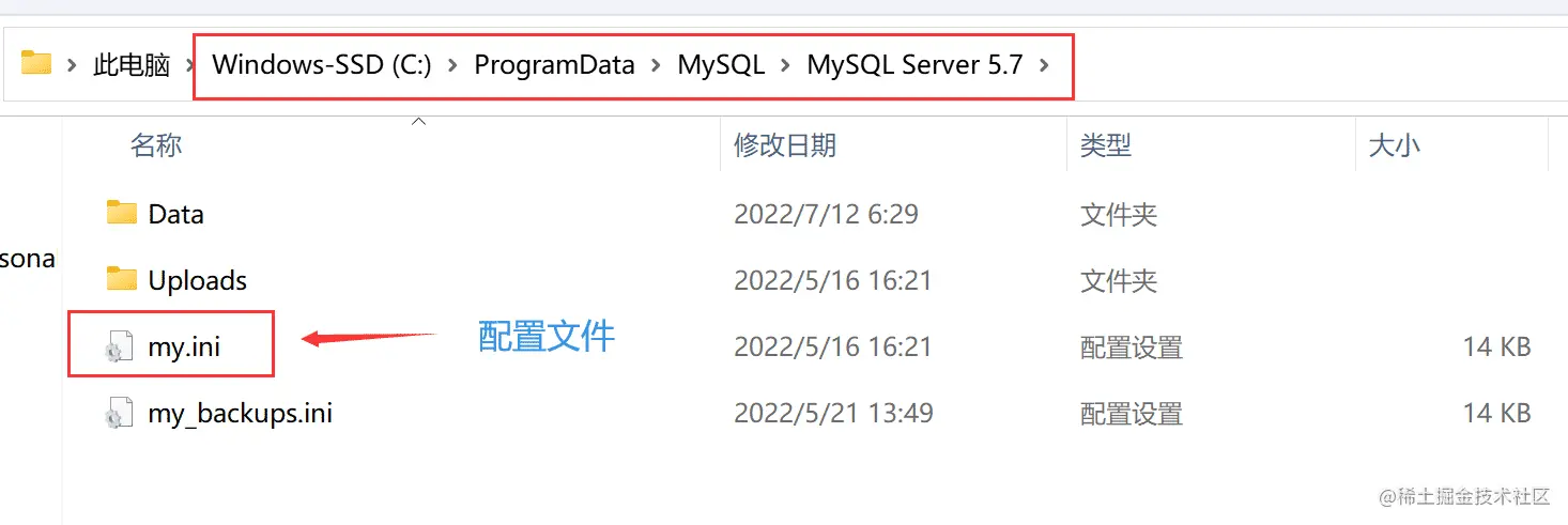 将这段路径复制到文件资源管理器中, 就可以找到 my.ini 这个配置文件了