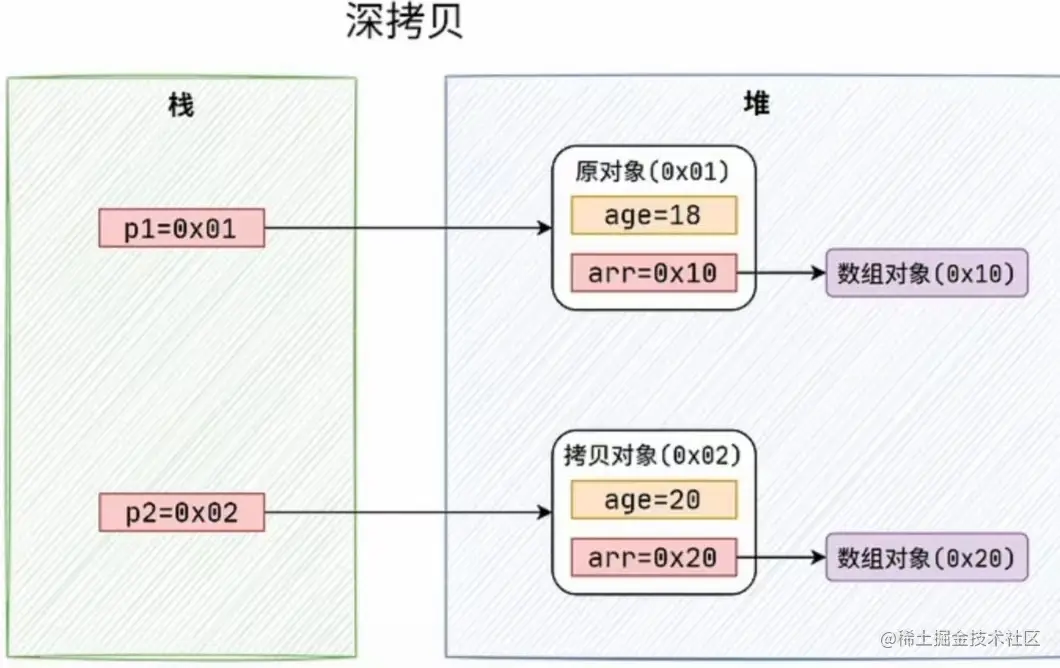 console.log('p2',p2) // p2 { age: 20, arr: [ 1, [ 5, 6, 7 ], 4 ] }