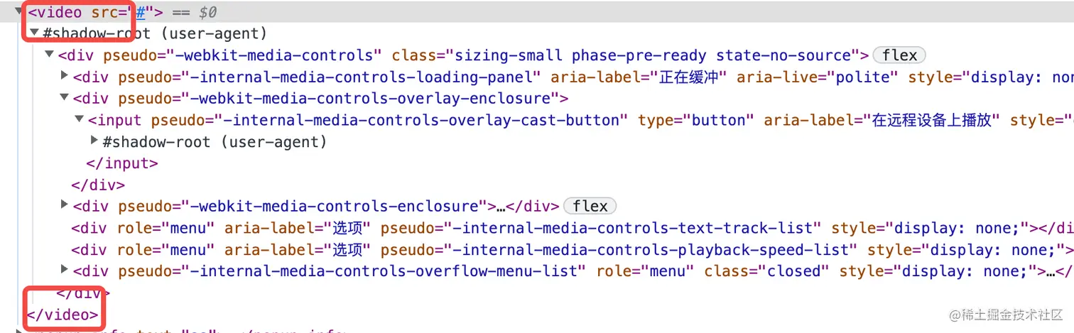 我们可以看到外面的 className 并没有影响到 shadow DOM 内 的 className。即便我们添加了最高优先级,两个 className之间依旧不能相互影响,(ps:input、video 这些标签,本身也是web Components)