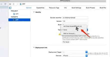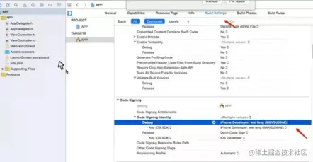 注意二: 开发者在自己电脑上安装这些文件,进入程序更改对应的 bundleID 找到 Building Setting -> Code Singing Identity 修改对应证书和描述文件。