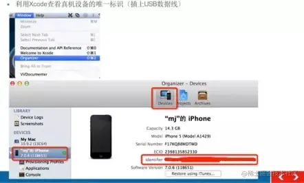 2)先获取设备 UDID 获取流程:插入真机->打开 XCode - >devices ->拷贝真机 UDID