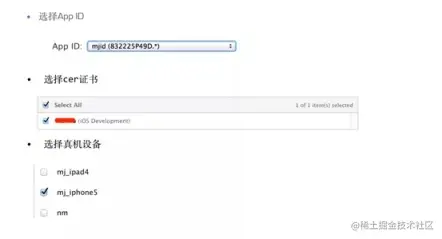 图片 5 配置描述文件 ProvisioningProfiles 简介:将 Cer 证书,APP ID,以及设备的 UDID 关联在一起的文件,即为描述文件。