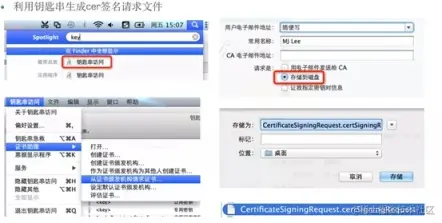 如何配置: Mac 打开钥匙串-->证书助理-->从证书颁发机构请求证书-->填入邮箱/名称/保存位置什么是 CSR: CSR 证书请求文件(Cerificate Signing Request),证书申请者在申请数字证书时由 CSP(加密服务提供者)在生成私钥的同时也生成证书请求文件,证书申请者只要把 CSP 文件提交给证书颁发机构后,证书颁发机构使用其根证书私钥签名就生成了证书公钥文件,也就是颁发给用户的证书。