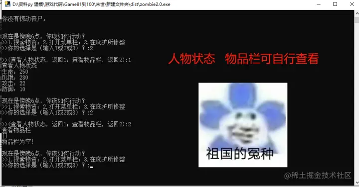 热血激动也给大家制作一款Python版本的文字末世游戏叭!