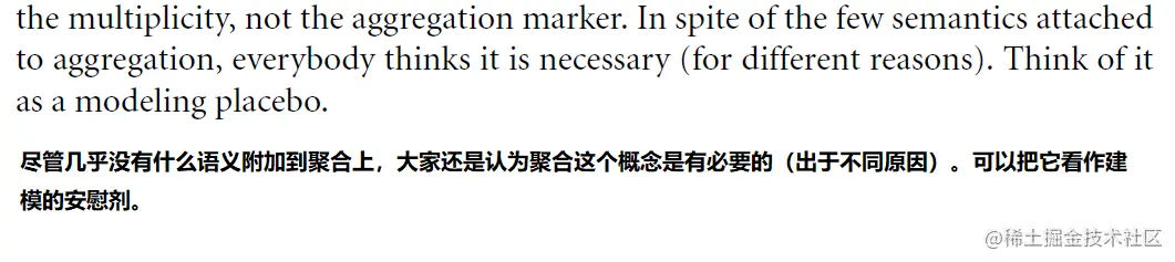 James Rumbaugh等人在《UML参考手册(第2版)》中认为聚合是建模的“安慰剂”。