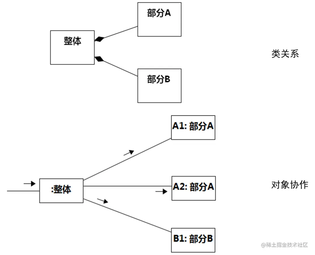 从元模型上看,“聚合”应该叫作“分享型聚合”,“组合”应该叫作“组合型聚合”,但本书还是使用“聚合”、“组合”,原因阅读后文自知。