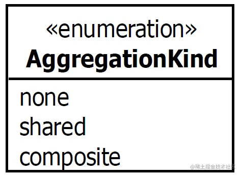 在UML元模型中,把它们视为属于三个不同的AggregationKind,如图8-119。