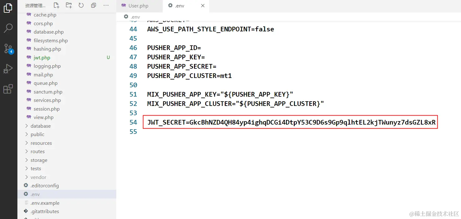 此时会在 .env 文件中看到刚才生成的配置