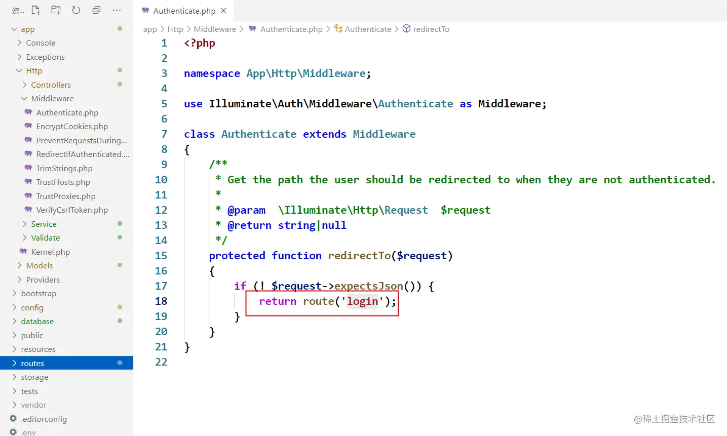 编程思想中 中间件是个很通用的方案。就像是一个过滤器,会过滤掉不合理的请求,或者是追加一些数据。系统中其实已经内置了很多中间件,能实现一些拦截,每一个中间件的具体作用还得去啃文档,多学习,这里只是简单的去说明一下。 当我们再次请求的时候,会出现一个错误。提示
