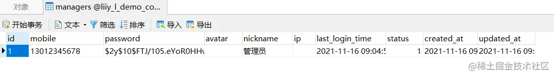 因为一些文章的审核操作都必须是管理人员,所以后台需要单独的一张表记录管理人员的账号信息。这时候就需要把之前的权限都绑定到 Managers 表中。