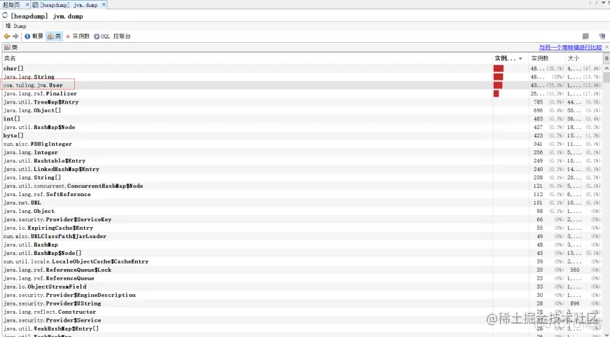 2、dump生成的文件可以用jvisualvm命令工具导入该dump文件分析: 打开 jdk 的bin目录的 jvisualvm 工具,选择文件,再选择装入,并选中对应的文件类型,即可进行导入文件,分析内存对象。