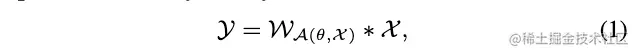 在如动态裁剪、动态卷积等动态网络中,卷积核根据输入进行动态参数化,这样的卷积可表示为: