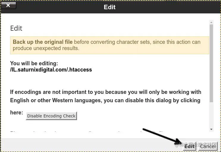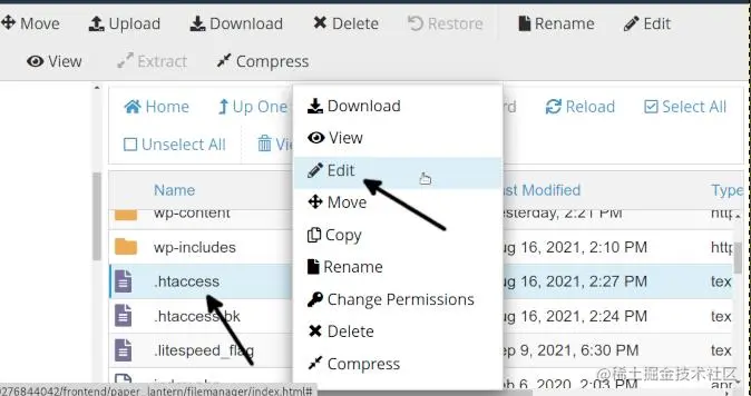 找到名为.htaccess的文件,右键单击并按下 编辑 按钮。