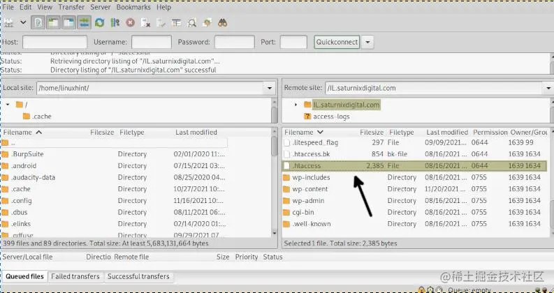 填入你的用户名和密码,并连接到你的服务器。然后找到如下所示的.htaccess文件,并下载它。如果该 .htaccess文件,不要担心,你可以按照下面的步骤创建并上传它。