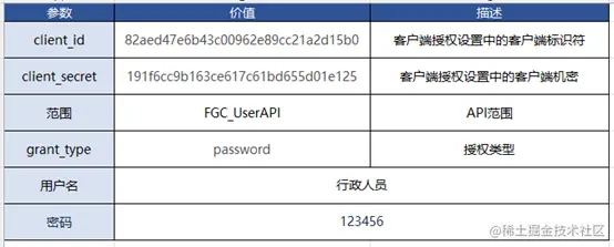 这是密码授予类型请求参数列表: