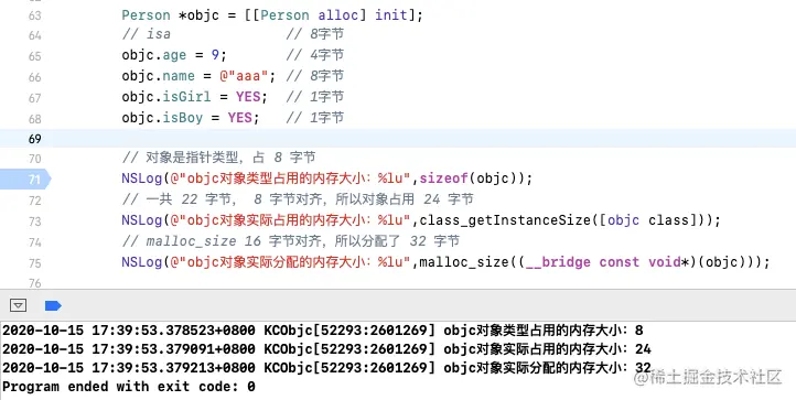 实例对象而言,其对象类型的本质就是一个结构体(即 struct objc_object)的指针,所以sizeof(objc)打印的是对象objc的指针大小,我们知道一个指针的内存大小是8,所以sizeof(objc) 打印是 8。注意:这里的8字节与isa指针一点关系都没有!!!)