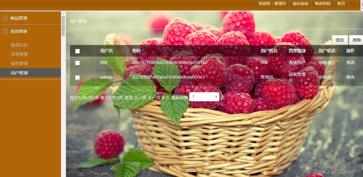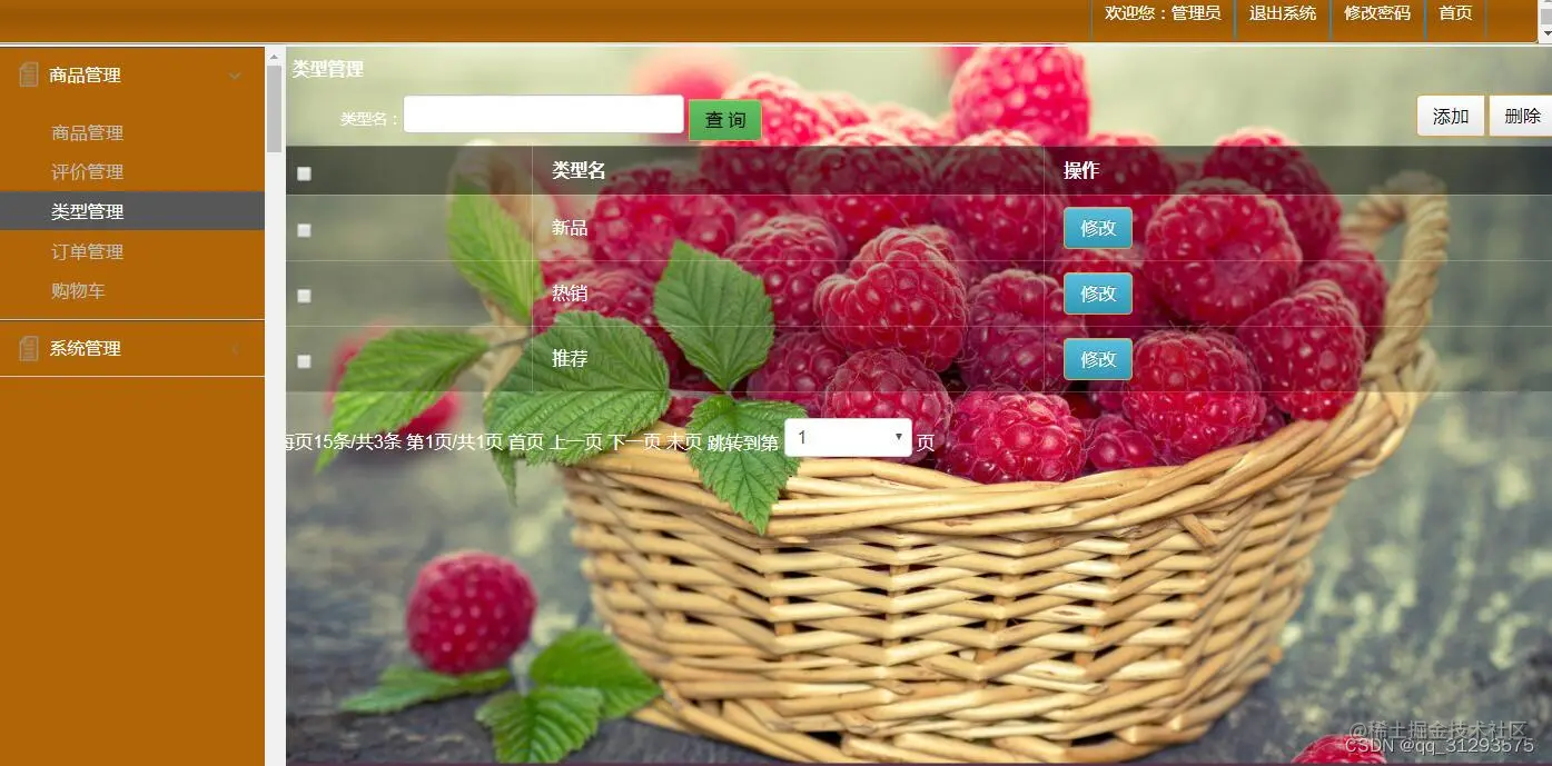 - 后台管理:该部分主要对商城内的一些基础数据进行有效管理,包括商品管理、会员管理、订单管理、公告管理等。