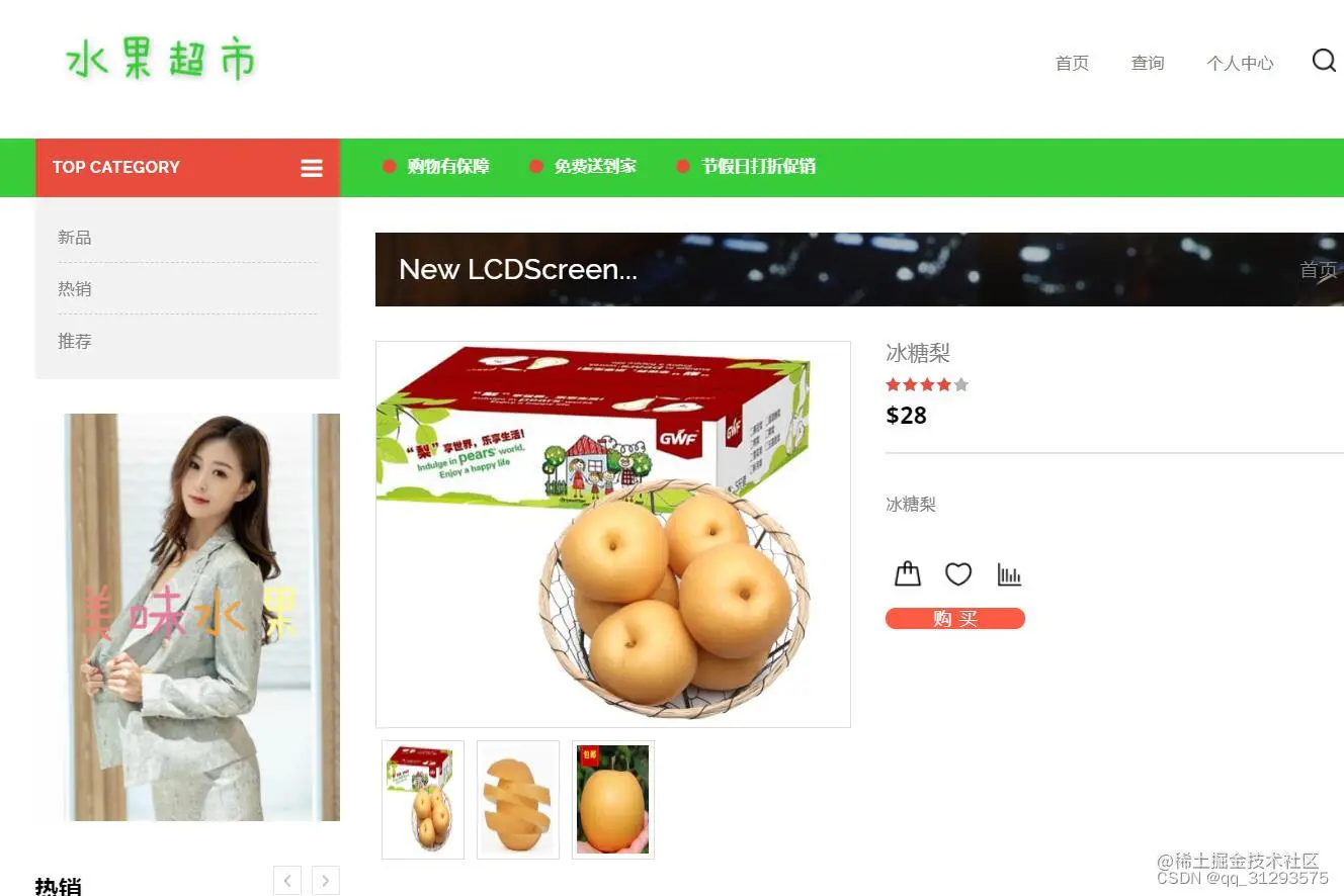 - 前台商品展示及销售:该部分主要包括新品上架、特价商品、销售排行、购物车、会员管理、商品公告及订单查询、商品查询等。