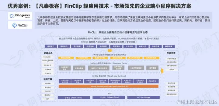 在整个智能手机销量下滑的现状和互联网流量红利殆尽的双重背景下,要增加一个App安装量和注册量的代价越来越贵,企业埋头自己开发各种服务App的时代已去。但针对银行、证券、政务、电商、车企等大型企业机构持续拓展自身的服务圈,以丰富的服务去活跃自有平台海量的存量用户又是必有动作,该怎么搞呢? 过往运行小程序一直被认为是超级平台的“特权”,它是“超级App”为用户提供连接一切服务的最佳延伸载体,能够丰富这些平台各自的用户生命周期。让自己的App具备运行小程序能力是打造自有小程序生态的首要前提,这个门槛对于很多企业机构来讲已是非常大的挑战,除了要考虑开发的巨大投入外还要保障运行的可靠性和兼容度。 其实市场中也有非常成熟的解决方案可以直接便捷的使用,在《2021 年度小程序互联网发展白皮书》就看到凡泰极客推出了 FinClip去填补市场的空白,介绍中讲到正是基于企业数字化转型过程中构建数字生态连接能力的需求,向市场提供了兼容互联网主流小程序技术的轻应用平台,帮助企业打造自己的应用商店,开发、上架、管理与风控以小程序形态存在的碎片化业务场景,以乐高组件方式组装业务应用,赋能业务部门进行跨组织、跨机构、跨行业、跨终 端的数字生态运营。