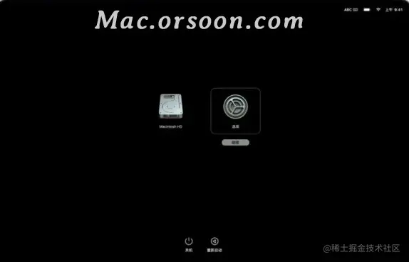 M1 Mac:长按电源键直到屏幕出现“正在载入启动项”,选择“选项”,然后点按“继续”。