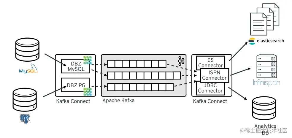 自建的架构: PGSQL + Debezium PGSQL + Kafka Connector + Kafka + Logstash + Elasticsearch