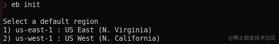 首先初始化你的环境,它会询问你想部署应用程序的地区。默认情况下,它需要3个,这是俄勒冈州。