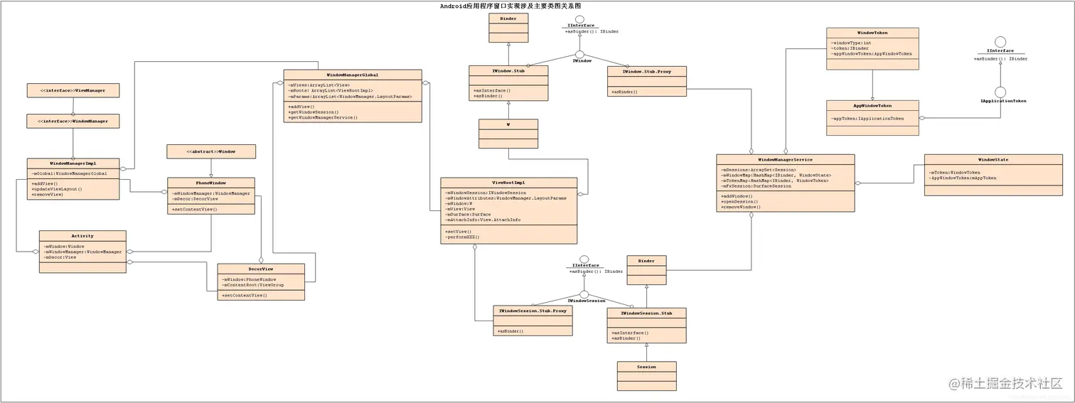 - IWindow: APP端窗口暴露给WMS的抽象实例,同时也是WMS向APP端发送消息的Binder通道,它在APP端的实现为W
