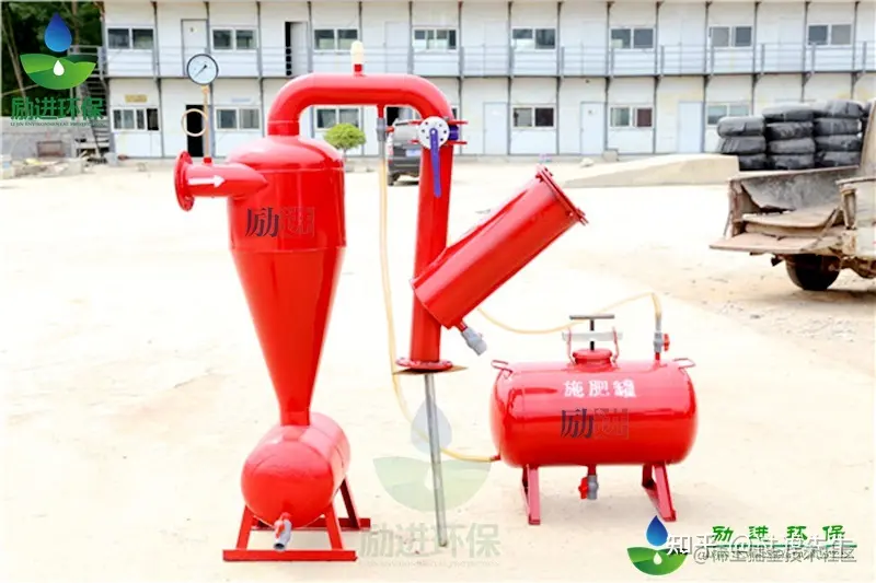 利用水力学中的离心原理,水流沿切线方向进入分离器,质量大的杂质被离心力推向锥体侧壁,滑至集砂膛中,然后定期排出。净水沿锥体中心向上排出分离效。