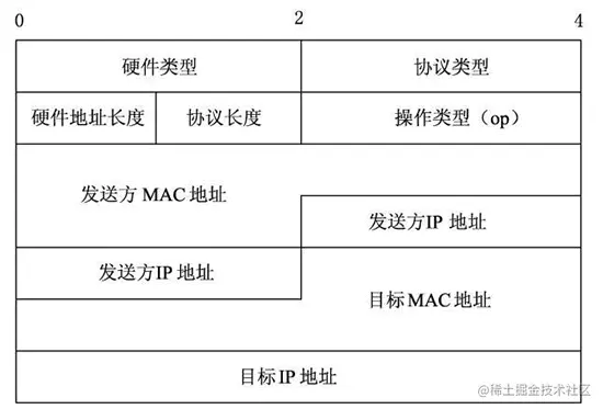ARP协议是地址解析协议是通过解析IP地址得到MAC地址的.所有ARP协议在网络层被应用,它是网络层与链路层连接的重要枢纽,每当有一个数据要发送的时候都需要在通过ARP协议将IP地址转换成MAC地址. ARP 协议是通过报文进行工作的,ARP 报文格式如图所示.