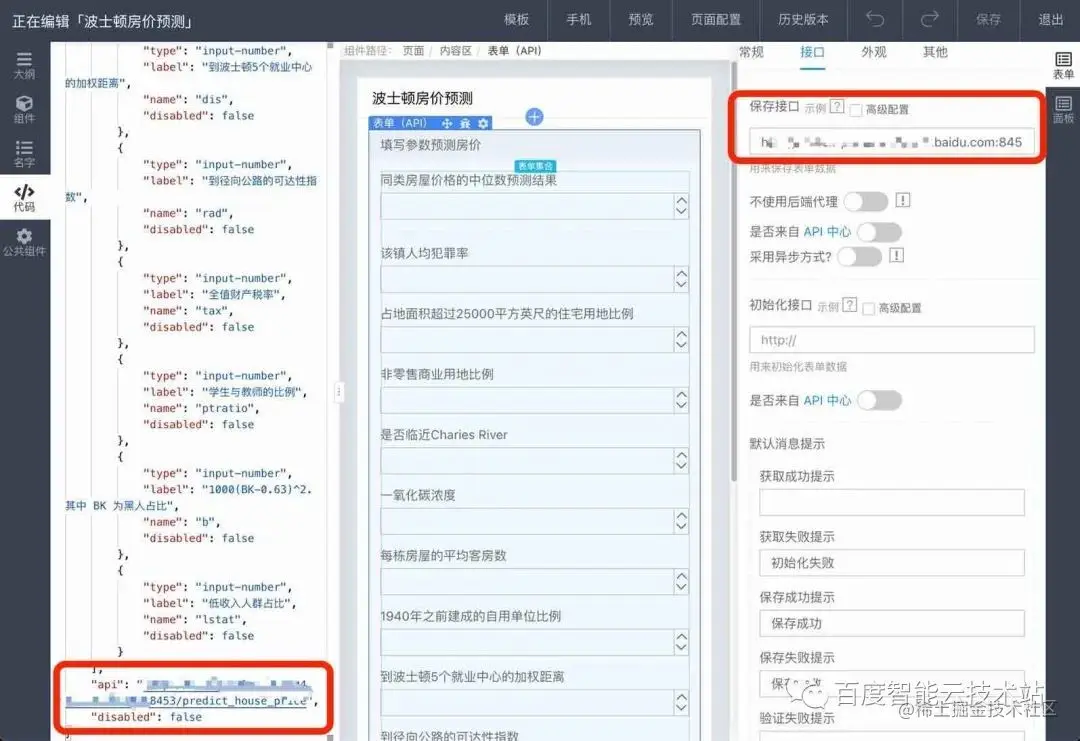 图 6 Form 组件上配置的保存接口 url
