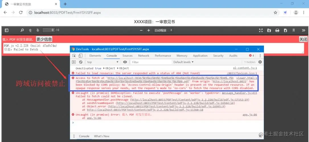 图 3 前端向不同域名发送的请求由于跨域被浏览器拦截