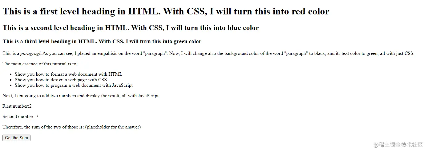不过,这个页面非常基本,没有吸引力。如果你正在建立任何东西,而不是一个演示,你将需要添加一些基本的风格,使其更有吸引力。而我们恰恰可以用CSS来做到这一点。