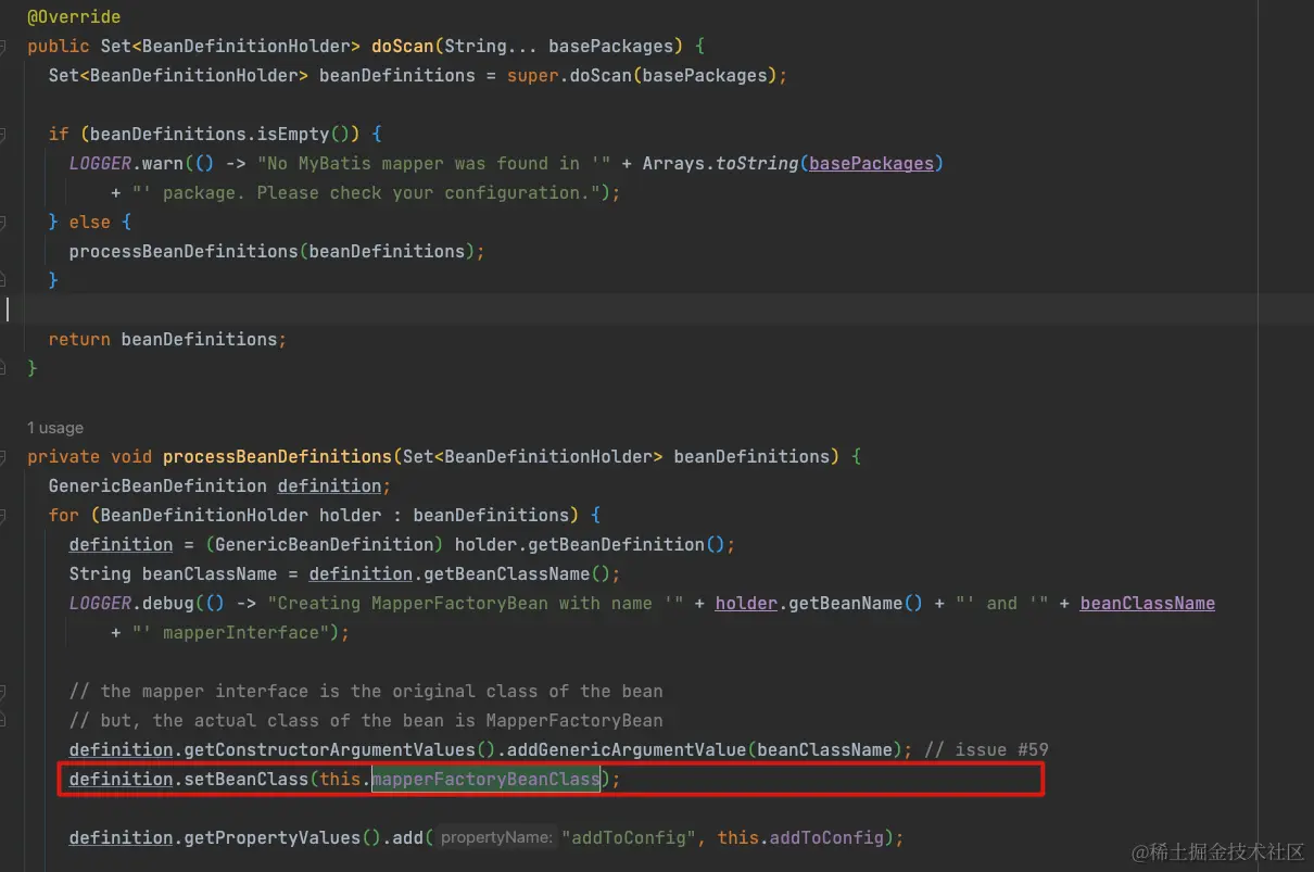 - 首先利用 ClassPathBeanDefinitionScanner 找到符合规则的类生成 BeanDefinition。