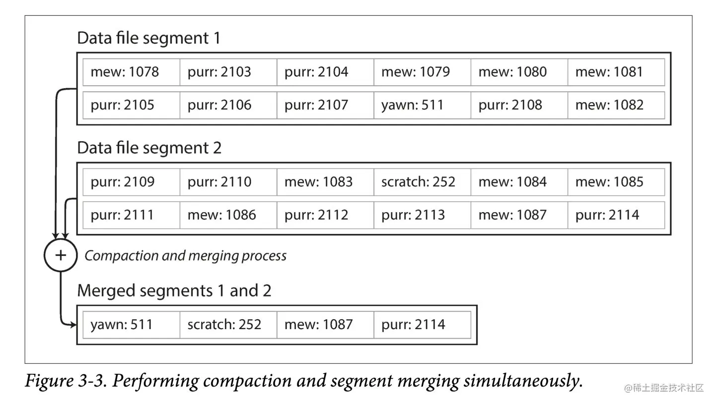 - 宕机恢复。在机器重启时,内存中的哈希索引将会丢失。当然,可以全盘扫描以重建,但通常一个小优化是,对于每个 segment file, 将其索引条目和数据文件一块持久化,重启时只需加载索引条目即可。