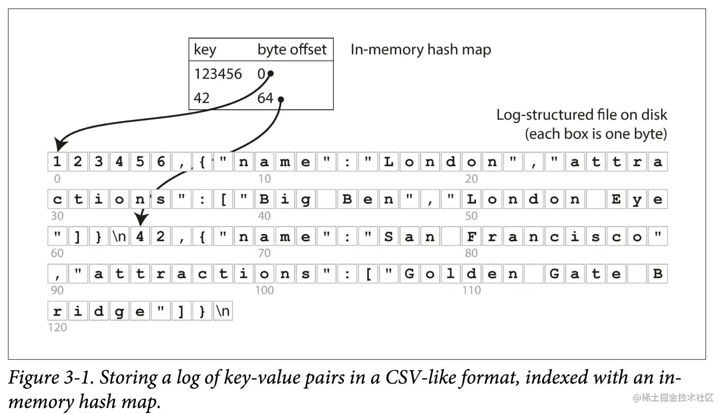 对于 KV 数据,前面的 BitCask 存储结构是: